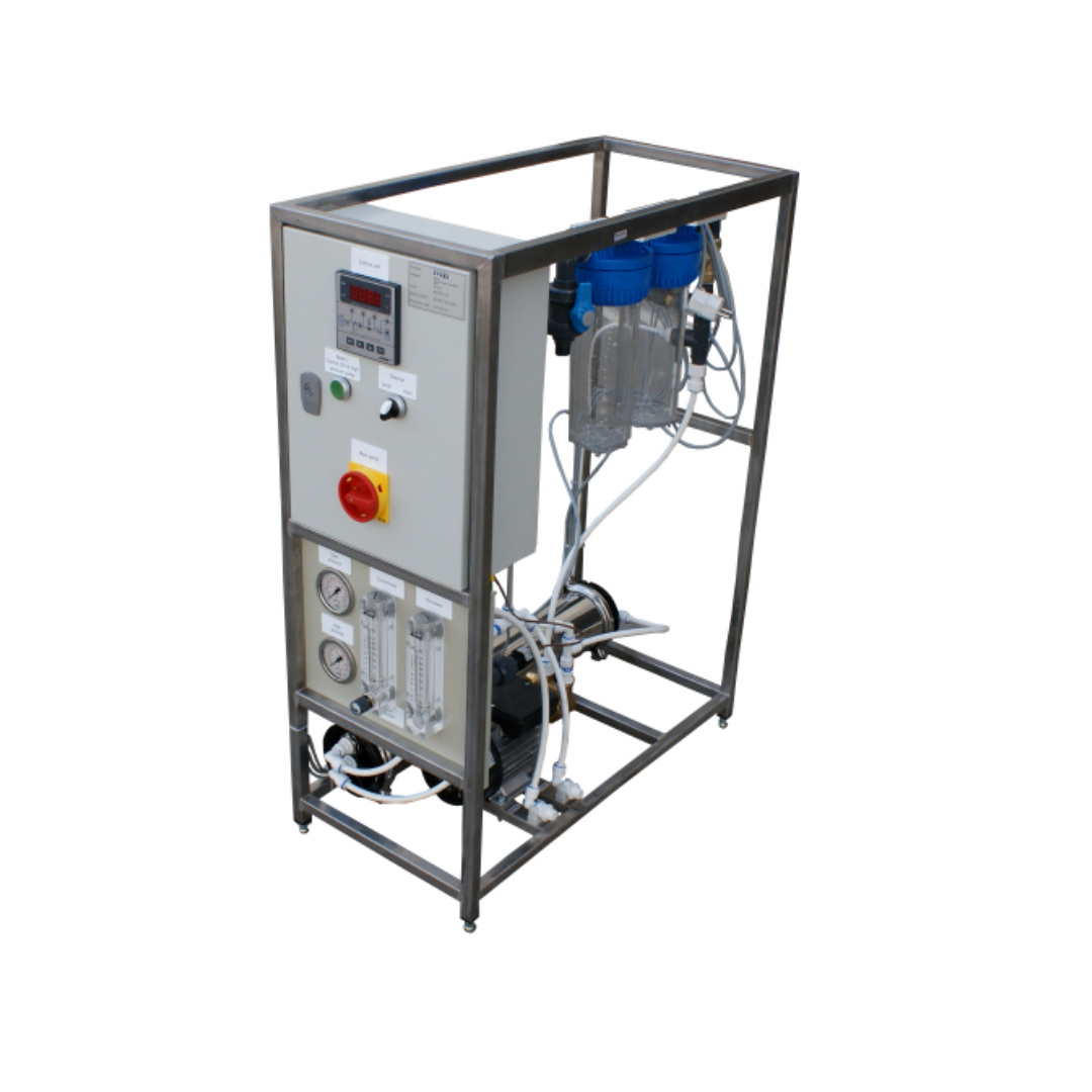 - upravljačka ploča s mikroprocesorom prema EN 60204, standardu DIN VDE 0113 – klasa zaštite IP 54 uklj. LED za rad i neispravnost, glavni prekidač, alarm visoke vodljivosti, priključak za prethodnu obradu, kao i kontrolu razine za spremnik permeata